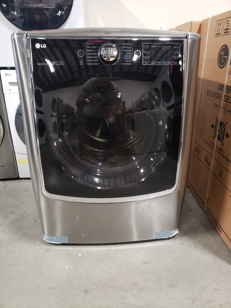 Introducing the LG Electric Dryer, now available for purchase on Appliance guys. Engineered for whisper-quiet operation, its perfect for uninterrupted daytime use. The Sensor Dry feature automatically adjusts drying time based on moisture levels, ensuring optimal results for loads of any size while conserving energy and extending garment lifespan. This ENERGY STAR Certified dryer boasts a 7.4 cu. ft. Ultra Large Capacity and offers convenient features like FlowSense Duct Clogging & Lint Filter Indicators for hassle-free maintenance. With C