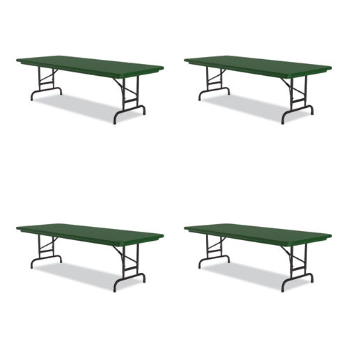 Correll Adjustable Folding Tables - Heavy-Duty, Green Top, Black Base (72x30x22 to 32 Inches)