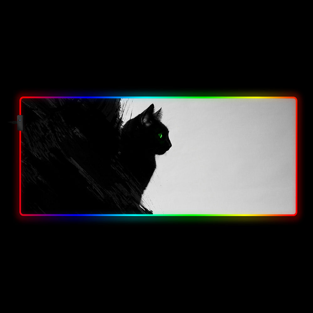 Black Cat Paint Design RGB Gaming Mouse Pad with LED Lighting, M-XXL Size