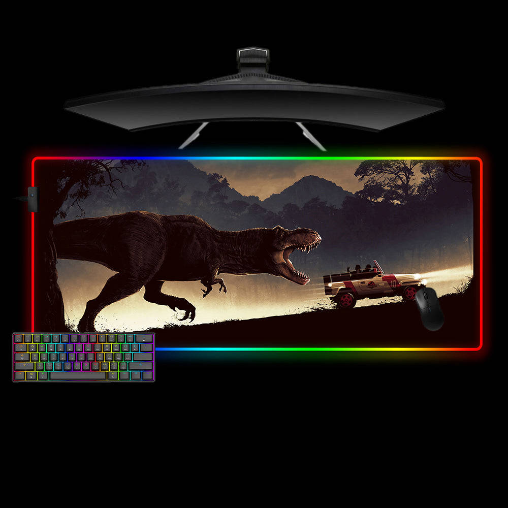 T-Rex Chase Design RGB Gaming Mouse Pad with LED Strip