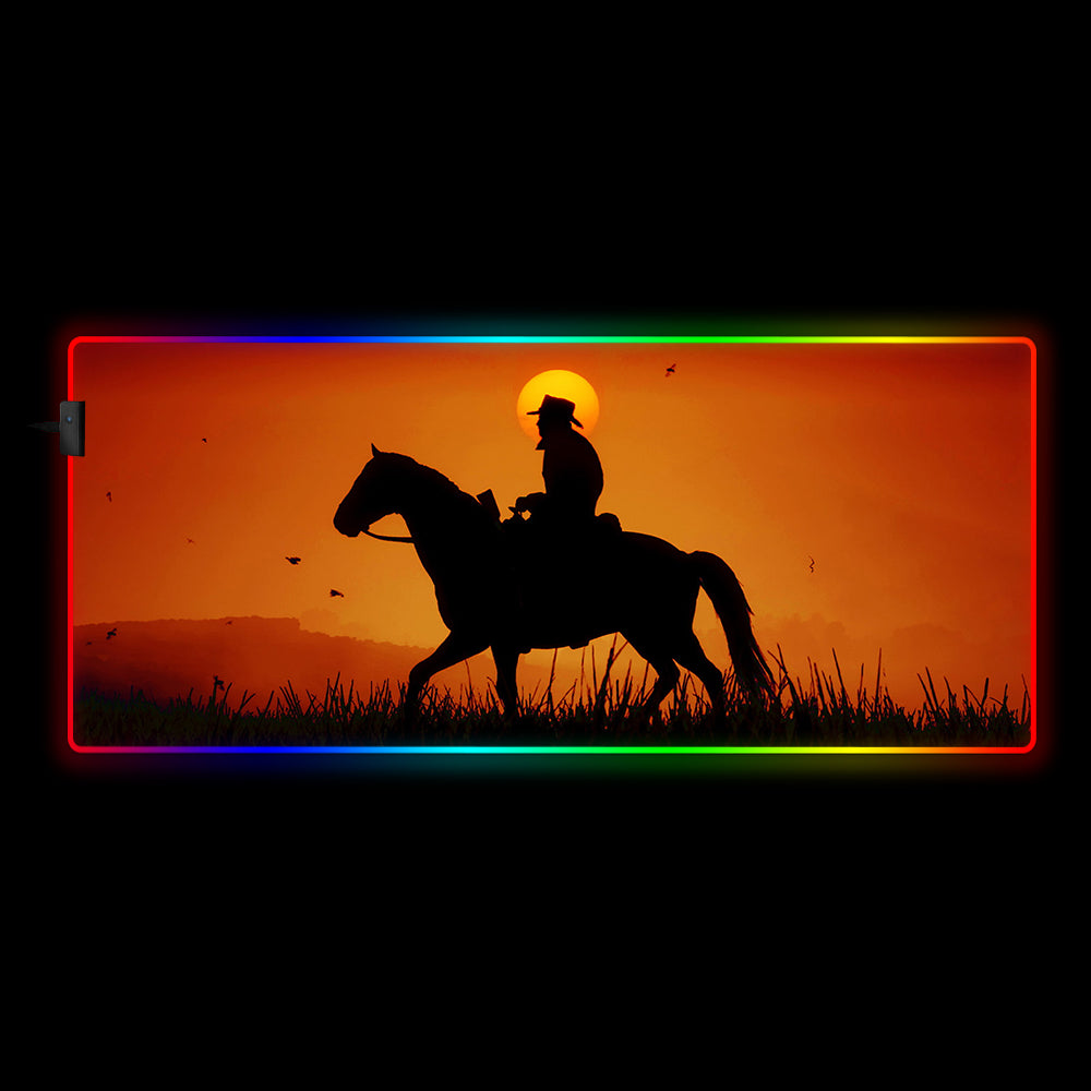RDR2 Sunset Ride Design RGB Gaming Mouse Pad with LED Light Modes