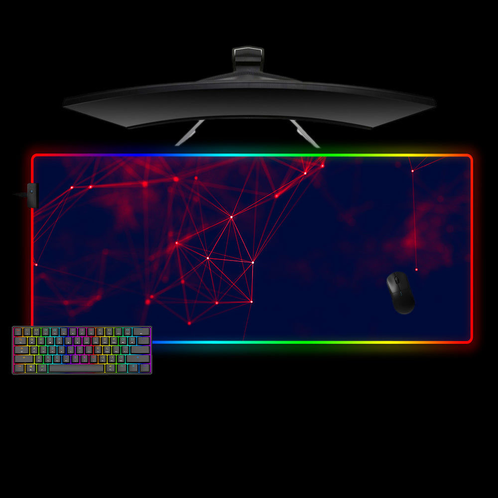 Red Cyberspace Design RGB Gaming Mouse Pad with LED Strip, M-XXL Size
