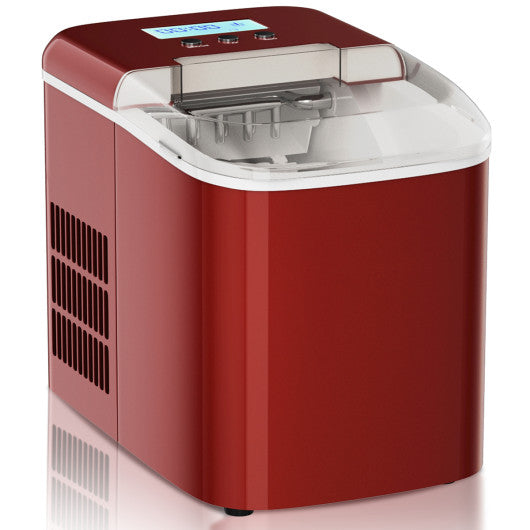 26 lbs Countertop LCD Display Ice Maker with Ice Scoop - Red